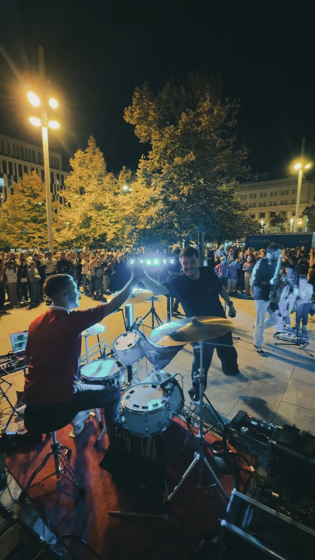 Durante las fiestas decidimos montar nuestra propia actuación en la calle, en pleno corazón de Zaragoza, en la Plaza España. Reunimos a nuestra gente y a todas las personas que pasaban por allí para ofrecer un concierto gratuito, abierto y pensado para disfrutar juntos de las fiestas de nuestra ciudad.